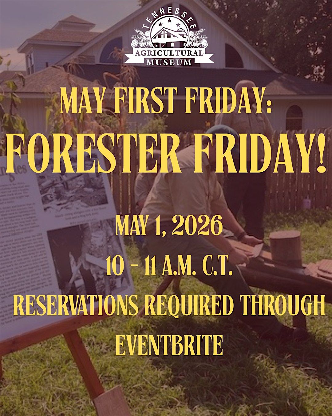 Come join us for Forester Friday as our May First Friday Program on May 1, 2026! Foresters will teacher students how to make shingles and use the crosscut saw. We might even get a visit from Smokey Bear himself!
