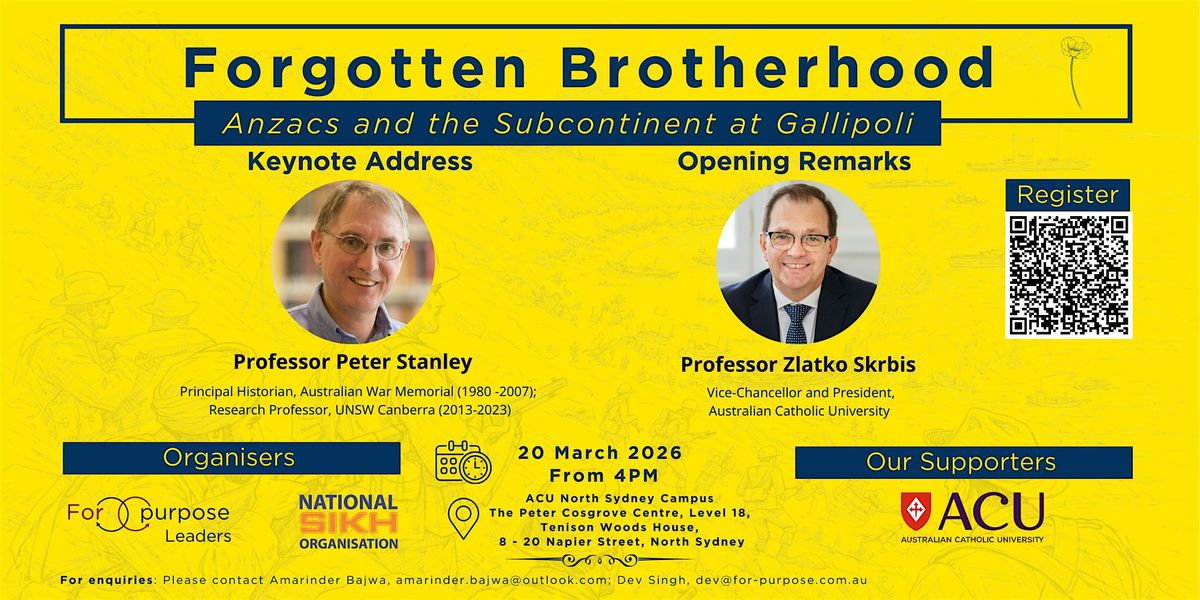 While Gallipoli occupies a central place in Australian national memory, the contributions of soldiers from the Indian subcontinent—many of whom served in support, medical, logistical, and combat roles—remain largely absent from mainstream narratives. This event seeks to broaden our understanding of Gallipoli by exploring these intertwined histories and the enduring legacy of imperial, military, and cultural connections forged during wartime.