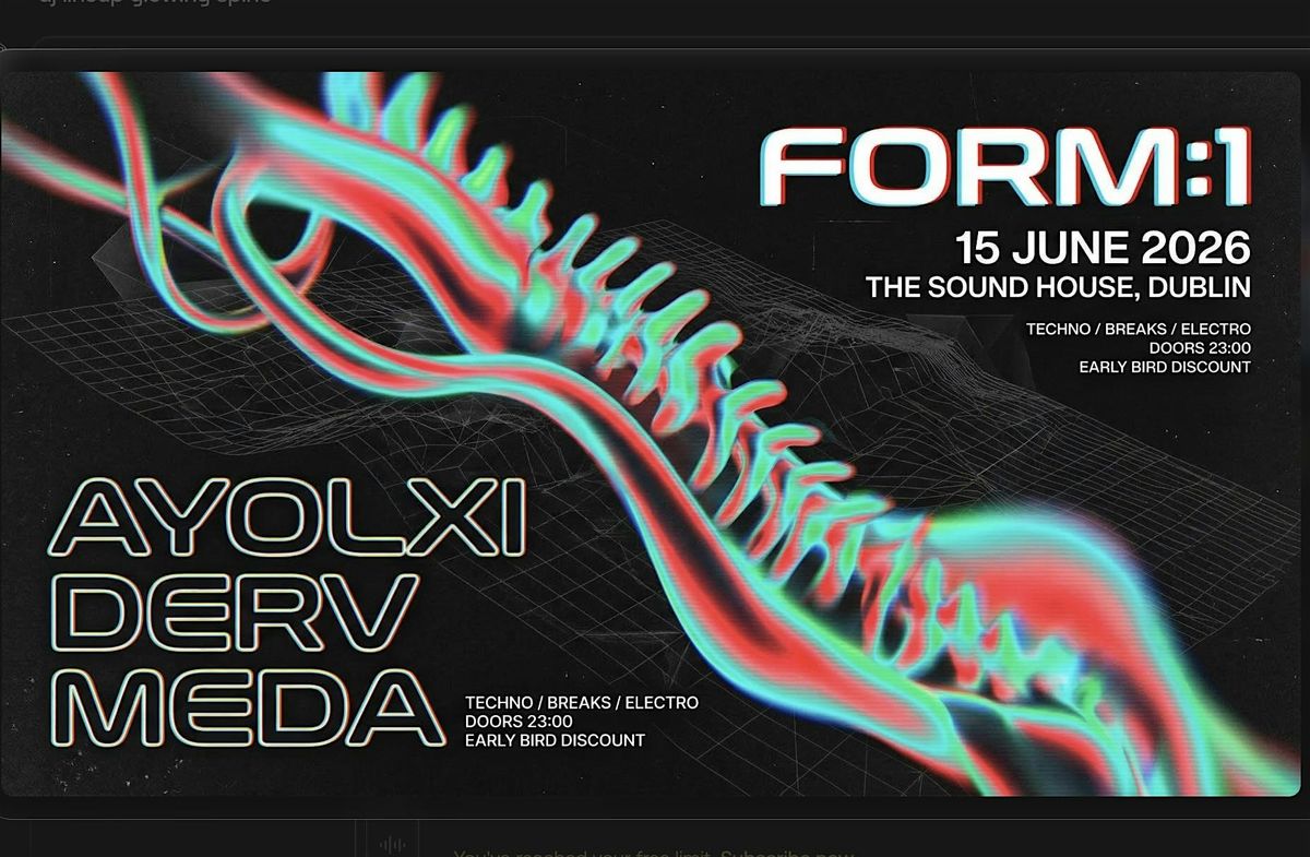 Join us at The Sound House on June 15, 2026 at 11:00 PM (Irish Standard Time) for an immersive techno night.Leading the lineup is Ayolxi, a Dublin-based selector known for her fluid approach to club music, moving seamlessly between kaleidoscopic breaks and groove-driven techno. Her dynamic sets and instinct for controlling energy have seen her share stages with Slin, Shlomo, 999999999, and Charlie Sparks.