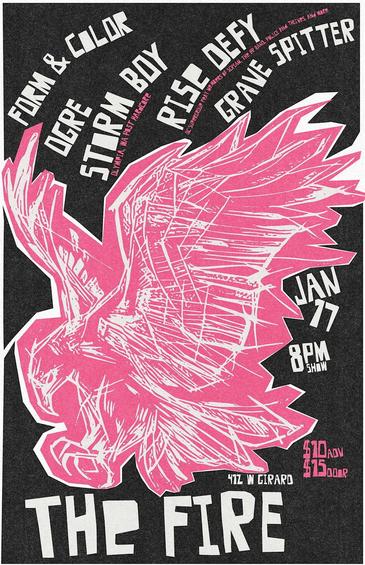 Get ready for an awesome night in person with some killer bands! Join Form & Color, Ogre, Storm Boy, Rise Defy, and Grave Spitter as they bring the heat live on stage. It’s the perfect chance to vibe out, discover new sounds, and hang with fellow music lovers. Don’t miss out on this epic lineup—come thru and rock out!