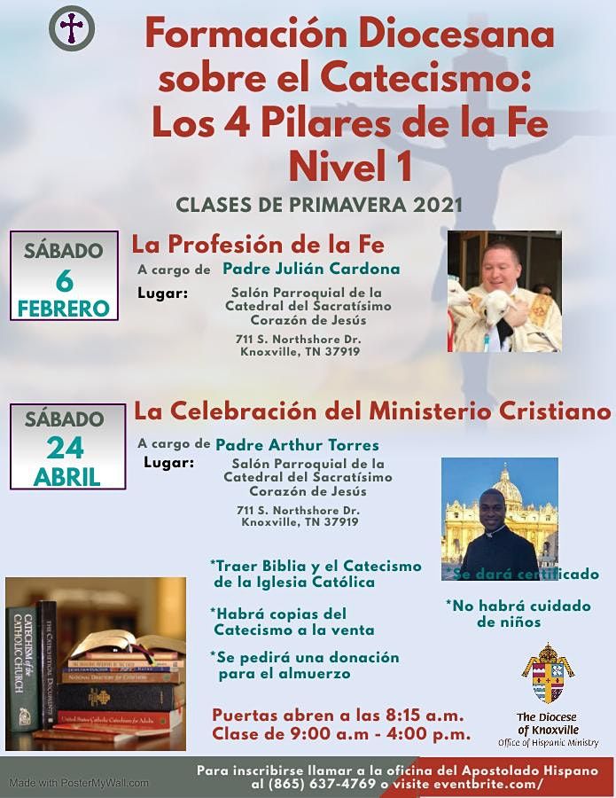 La Oficina del Apostolado Hispano en coordinación con la Oficina de Formación Cristiana ofrecerán una iniciativa diocesana que responde a una necesidad muy concreta de formación en la fe en nuestra diócesis con énfasis en la comunidad hispana: la Certificación de Catequistas en español. Nuestra diócesis ofrecerá esta formación en la fe para catequistas centrada en el Catecismo de la Iglesia Católica específicamente. Nuestra fe tiene cuatro pilares en la que nuestra vida cristiana debe estar basada y ser vivida. De acuerdo al catecismo nuestra fe, es un don de Dios y un acto humano por el cual el creyente se adhiere personalmente a Dios y da libremente su asentimiento a toda la verdad que Dios ha revelado. ¿Y cómo vivimos entonces la fe?