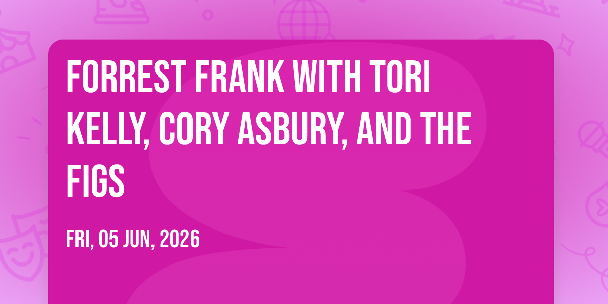 ๐ Location: 41.9576, -87.8844๐ Be part of history at Forrest Frank with Tori Kelly, Cory Asbury, and The Figs, an extraordinary gathering that will captivate your imagination! ๐๏ธ The prestigious Allstate Arena in Rosemont, IL sets the stage for an unforgettable experience on June 5th, 2026 at 12:00 AM. โจ They are bringing together the finest elements of entertainment and innovation to create moments that will take your breath away. From the moment you arrive, you'll be immersed in an atmosphere of wonder and excitement. ๐ฏ This carefully planned event ensures every guest experiences something truly special. ๐ Early booking is recommended for this must-attend event of the season!