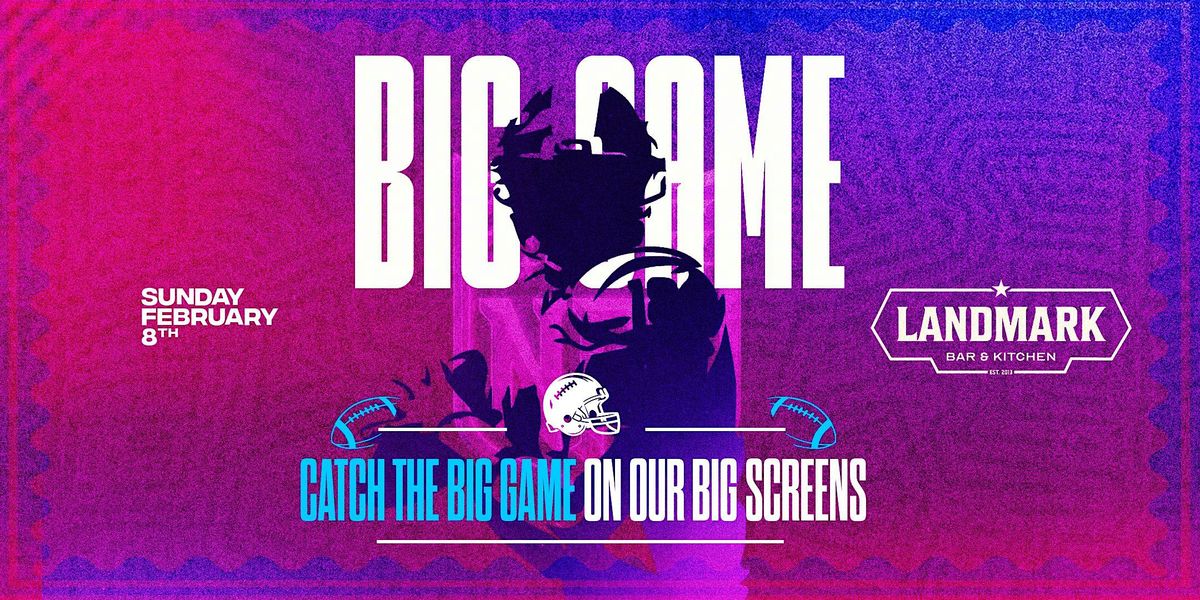 Join us for the ultimate Super Bowl Sunday watch party at Landmark. Huge screens, high energy, game-day specials, and a BIG SCREEN TV GIVEAWAY you can enter for FREE.
