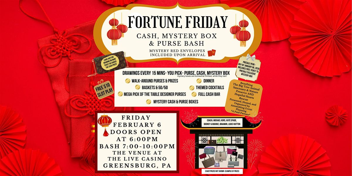Get ready to win big with our Fortune Friday Bash, where you can win purses, cash, mystery boxes, and more surprises!About this Event