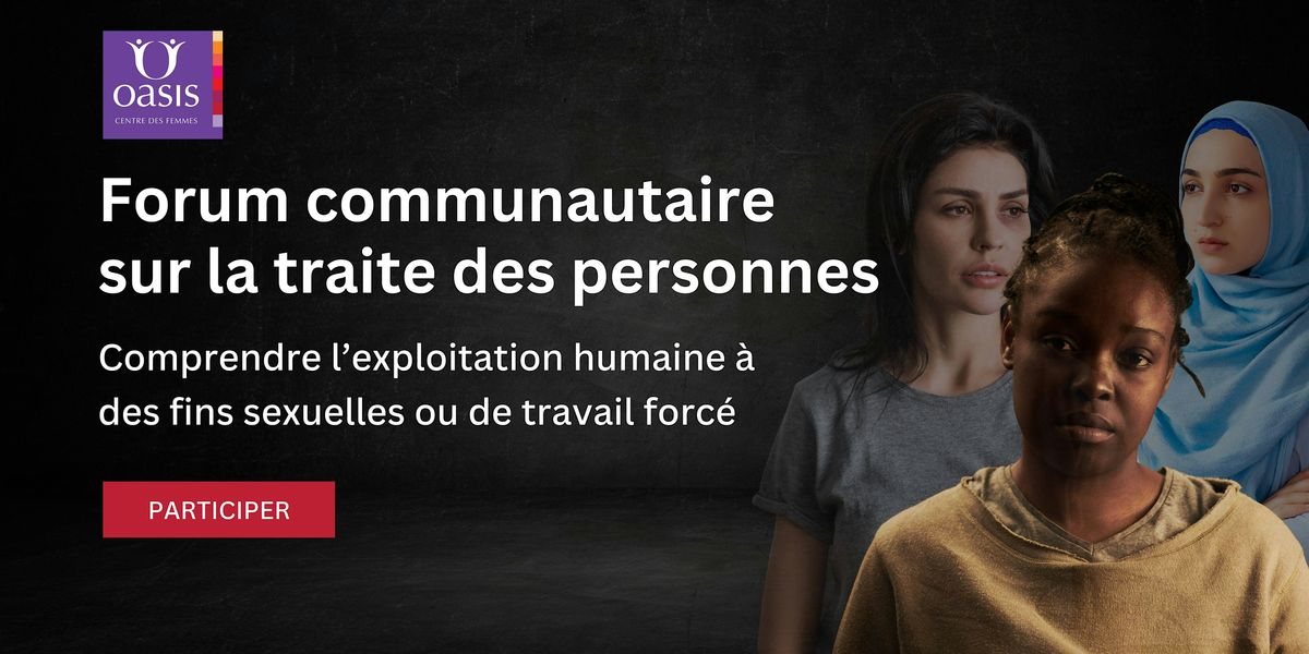 Oasis Centre des femmes a le plaisir de vous inviter à un forum communautaire consacré à un enjeu majeur et souvent méconnu : la traite des personnes.