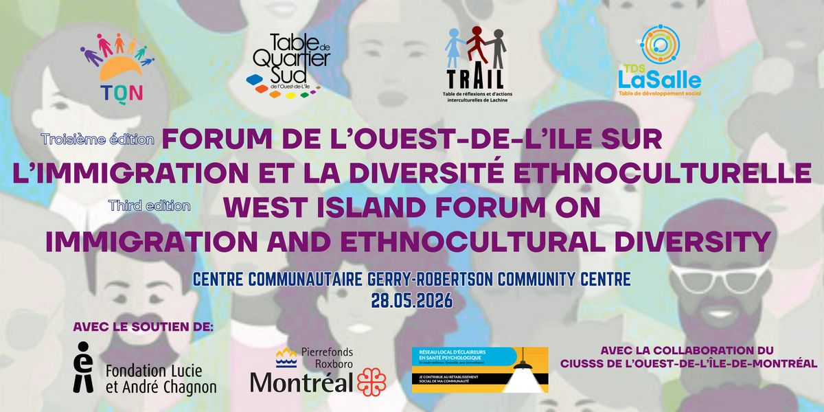 Dans le cadre de leur mission visant à lutter contre la pauvreté et l’exclusion tout en favorisant l’intégration des populations vulnérables, les Tables de quartier Nord et Sud de l’Ouest‑de‑l’Île, la Table de développement social de LaSalle et la Table de réflexions et d’actions interculturelles de Lachine, en collaboration avec le CIUSSS‑ODIM, organisent la 3e édition du Forum de l’Ouest‑de‑l’Île sur l’immigration et la diversité ethnoculturelle. Ce forum, qui réunira des acteurs sociaux des différents territoires de l’Ouest‑de‑l’Île (représentants d’institutions et d’organismes communautaires), permettra d’en savoir davantage sur les enjeux et les impacts liés à ces changements politiques et réglementaires. Des ateliers d’échange, inspirés de modèles et de bonnes pratiques, seront également proposés afin d’identifier des solutions concrètes pour mieux accompagner ces populations vulnérables.