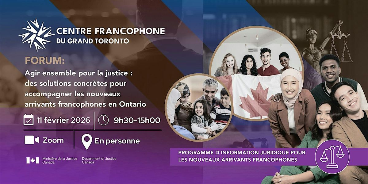 Ce forum portant sur les besoins juridiques des nouveaux arrivants a pour but de contribuer à l’amélioration de l’accès à la justice en français pour les nouveaux arrivants francophones en Ontario, en favorisant une approche intégrée, collaborative et axée sur les résultats, conformément aux priorités du ministère de la Justice du Canada. Bref nous essaierons de repondre à la question suivante: