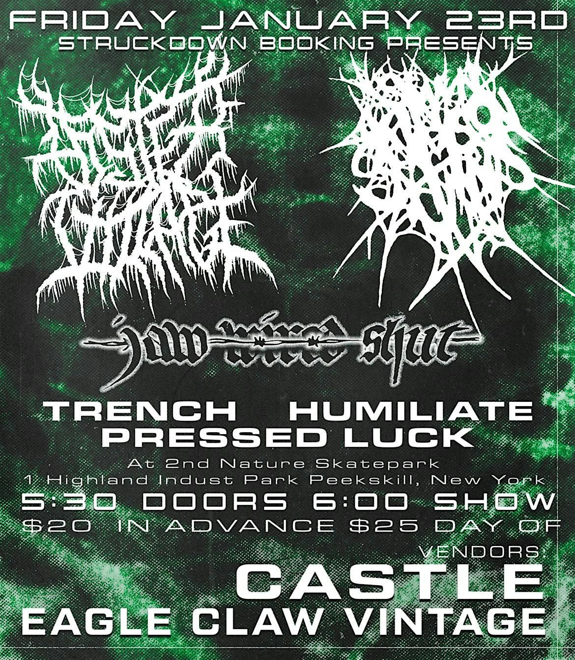 Foster village, seven crimson suns, jaw wired shut, trench, humilate, pressed luck, at 2nd nature skatepark