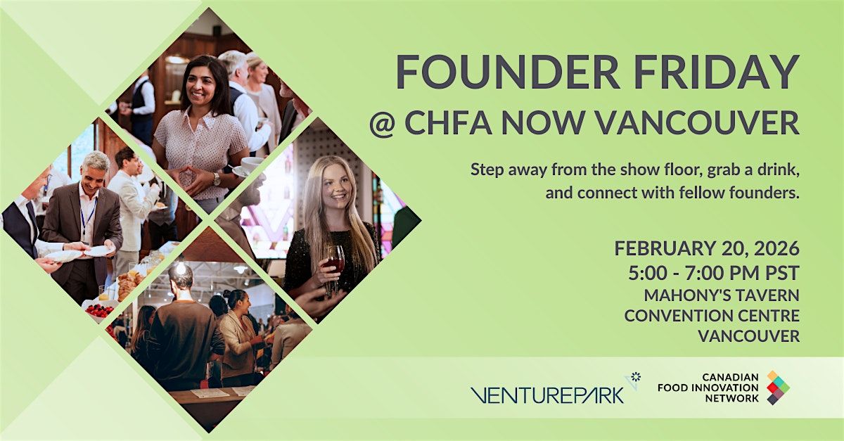 The Canadian Food Innovation Network (CFIN) and Venturepark, are thrilled to host a special Founder Meetup during CHFA NOW Vancouver—bringing together some of the most innovative and entrepreneurial minds in the food industry.