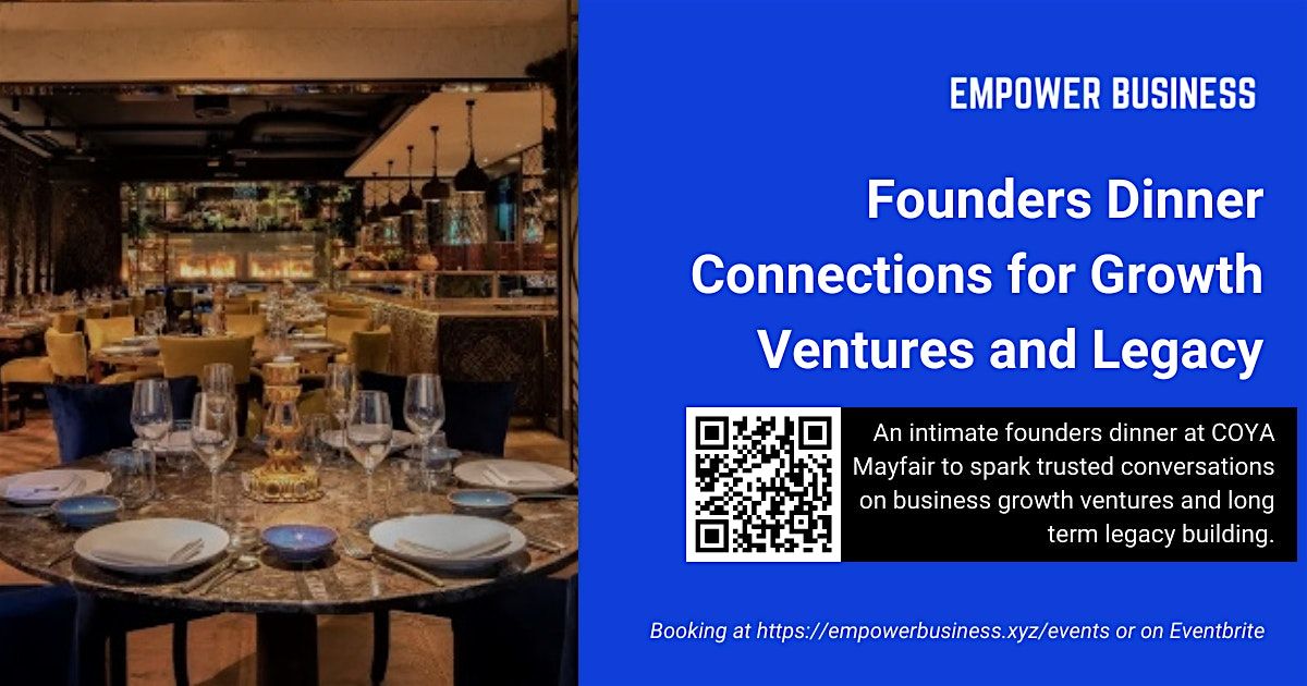Join a highly curated Founders Business Networking Dinner at COYA Mayfair, hosted by , Global Business Growth Strategist. This invitation-only style evening brings together just five founders and senior leaders around one table to enable meaningful connection, strategic dialogue and opportunity creation.