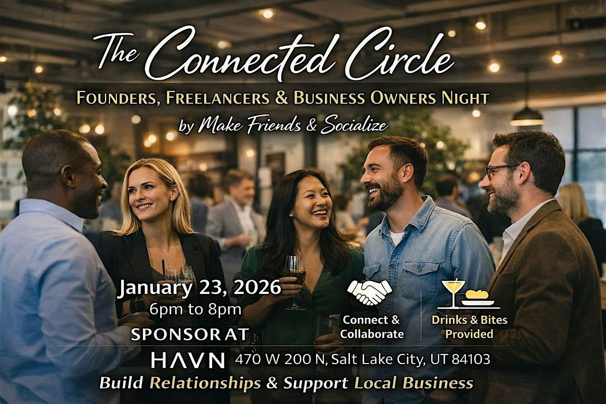 The Connected Circle is a curated business and community night hosted by Make Friends & Socialize, designed for entrepreneurs, freelancers, founders, and business owners who value real relationships over transactional networking.