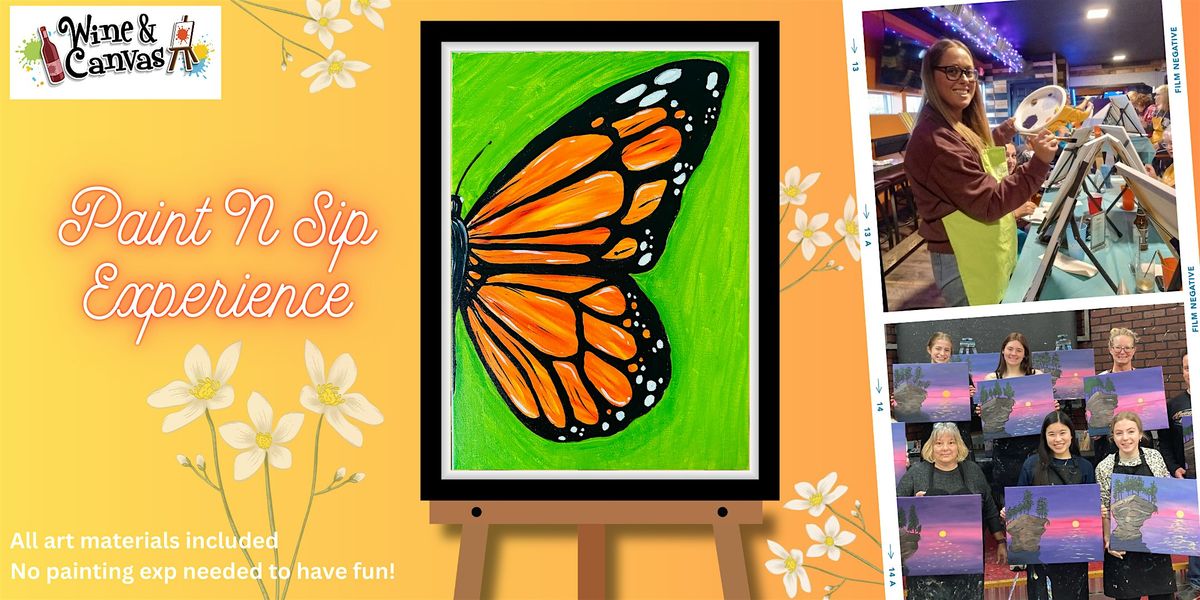 Join us for a vibrant afternoon of creativity as we paint “Monarch” at our Fountain Square Canvas & Wine event. This striking design by artist Magali features a bold close-up of a monarch butterfly — capturing the brilliant orange hues of a single wing set against a glowing backdrop. It’s a beautiful blend of color, contrast, & pattern that makes a stunning statement piece.