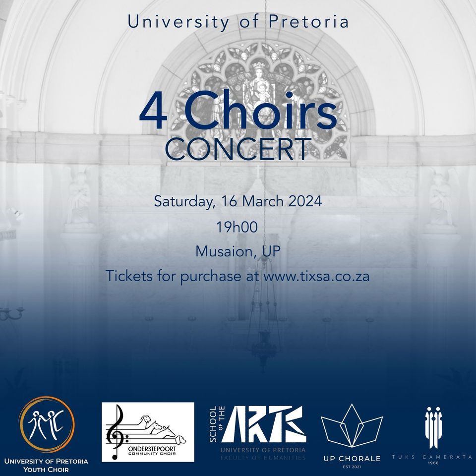 The University of Pretoria choirs including the UP Chorale, Tuks Camerata, UP Onderstepoort Community Choir, and the UP Youth Choir will all share the stage in concert on Saturday the 16th of March.