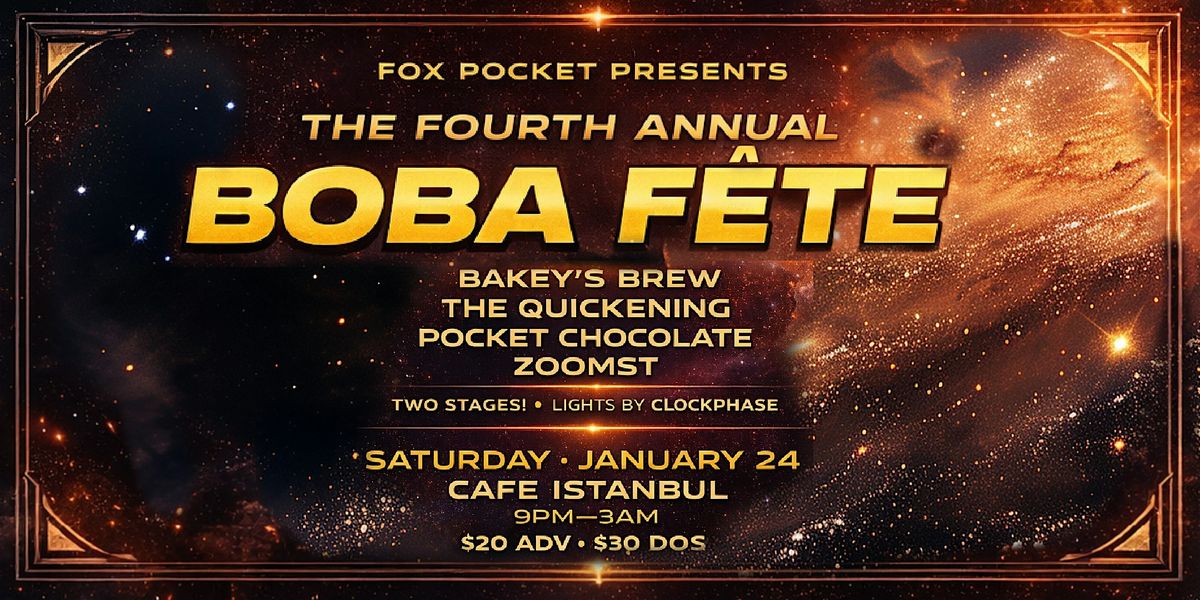 Fox Pocket Presents: The 4th Annual Bobe Fête ft. Bakey's Brew, The Quickening, Pocket Chocolate, and Zoomst with Lights/Visuals by ClockPhase & More!
