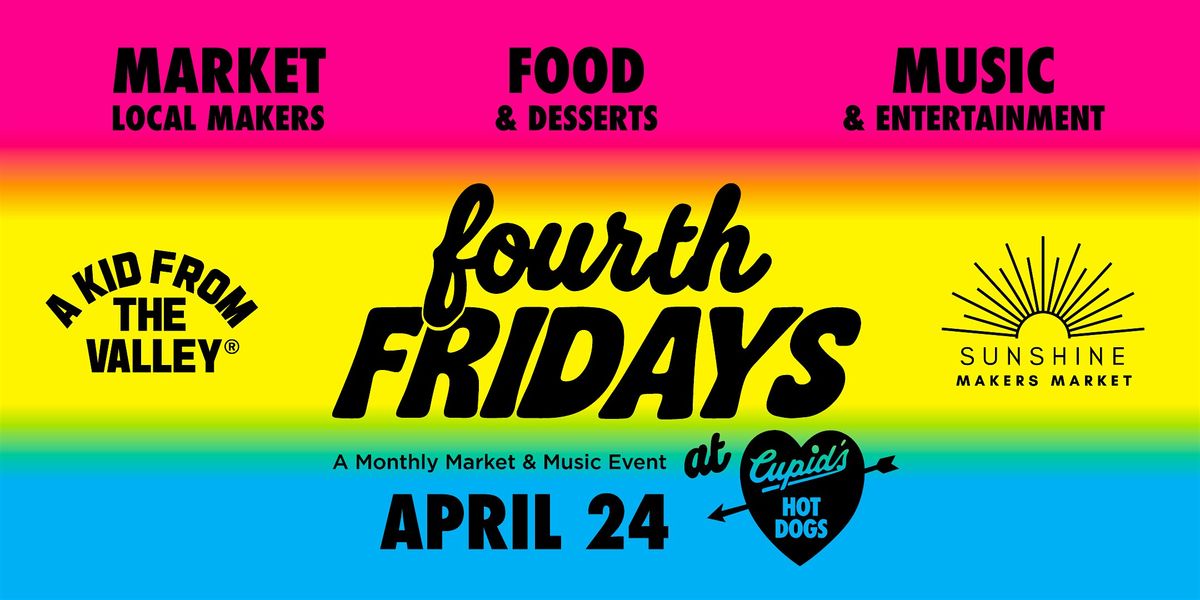 Fourth Fridays is a free, monthly outdoor celebration of Valley culture, community, and creativity, held every fourth Friday of the month in the heart of Winnetka at the iconic Cupid's Hot Dogs. Families, neighbors, makers, and music lovers gather for an evening of live DJ sets or local bands, a curated makers market, kids activities, and the legendary food that has made Cupid's a Valley institution since 1946. This is the neighborhood block party the Valley has been waiting for, free to attend, local at its core, and growing every month.