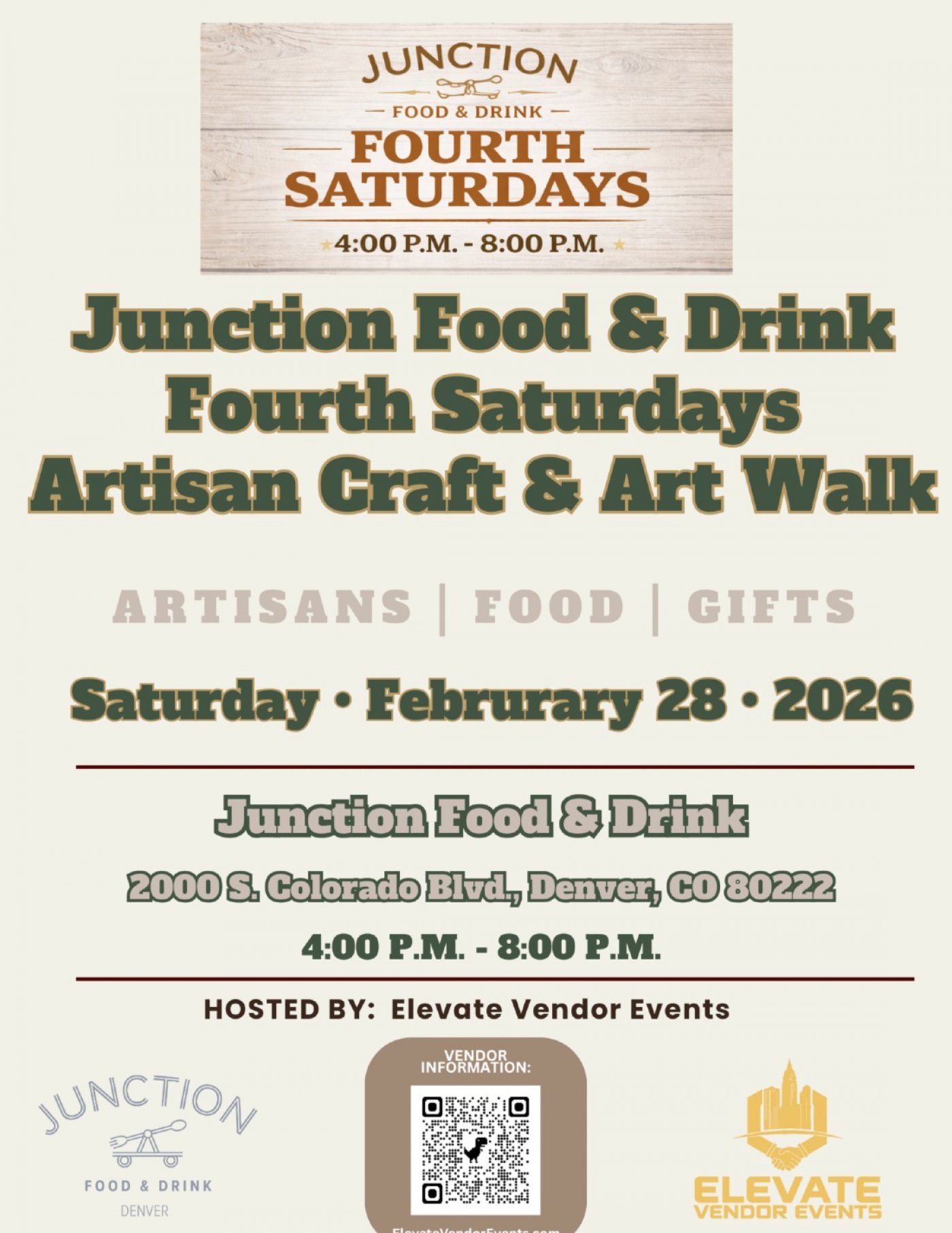 Join us for the Fourth Saturday Artisan Craft & Art Walk at Junction Food & Drink.