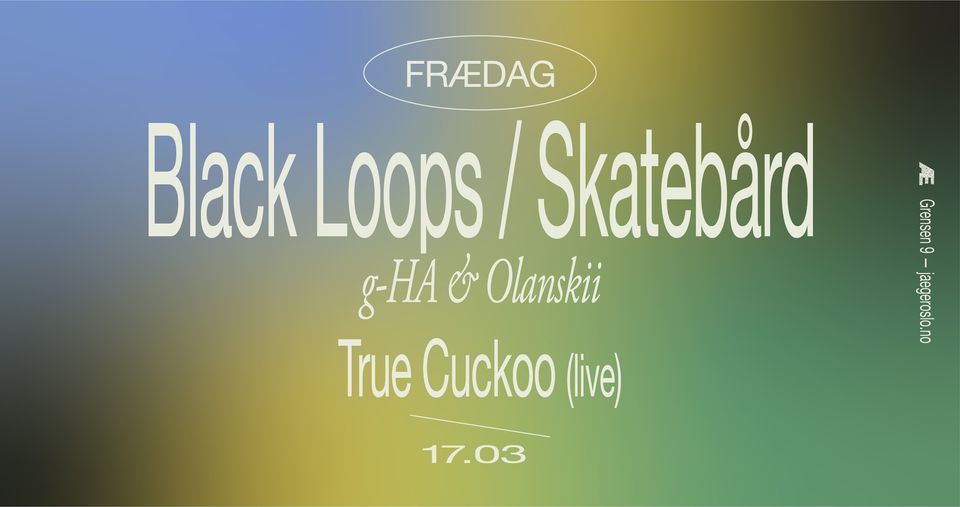 Fr\u00e6dag:  Black Loops + Skateb\u00e5rd + True Cuckoo (live) Black Loops | Skatebård | g-HA & Olanskii | True Cuckoo