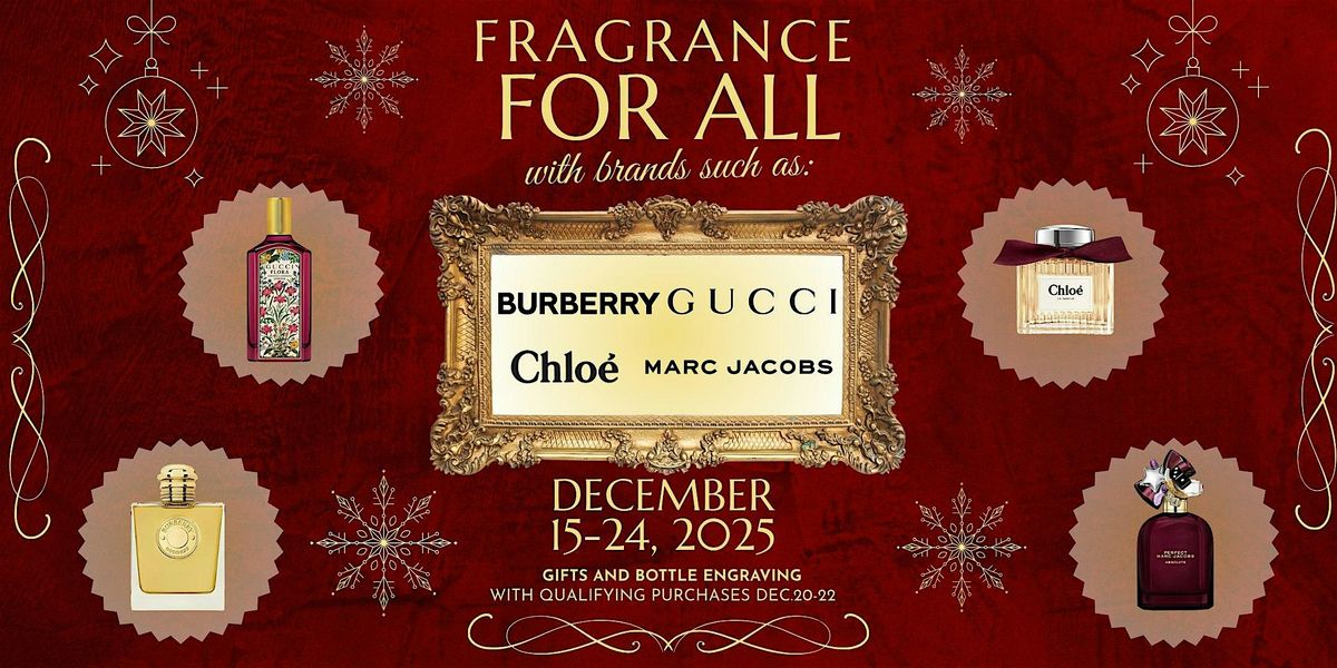 Welcome to the Fragrance for All Event! Join us at SEPHORA for the opportunity to find the perfect fragrance to either enjoy for yourself or to gift for the Holidays! Sephora is offering 20% off all fragrances for all Beauty Insiders, and the opportunity to have full size fragrances purchased from Burberry, Gucci, Marc Jacobs, and Chloe, personalized with engraving and a gift with qualifying purchases. You don't want to miss this!