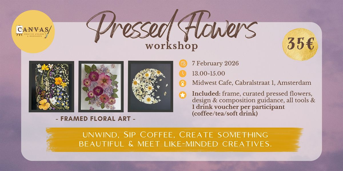 Join us for a dreamy, calming Pressed Flowers Workshop at Midwest Café and design your own framed floral artwork using a curated selection of pressed flowers. Think soft colors, beautiful composition, and a slow, cozy afternoon where you get to create something truly meaningful (and aesthetic ✨).