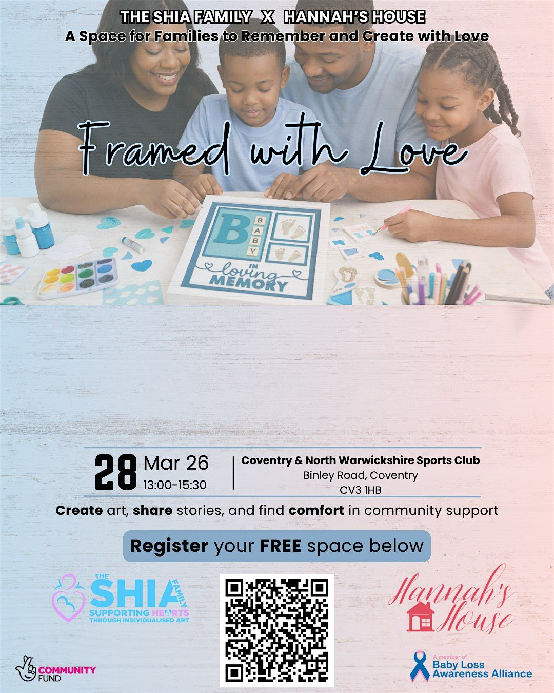 The Shia Family and Hannah's House warmly invite parents and their children to join us for Framed with Love , a special workshop created for families who have experienced pregnancy, neonatal, or infant loss. However long ago your loss was, you are welcome here.