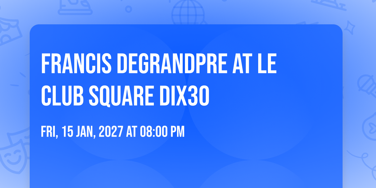 ✨ Experience the magic of Francis Degrandpre at Le Club Square Dix30, where moments become memories that last a lifetime! 🏛️ The iconic Le Club Square Dix30 in Brossard, QC sets the perfect stage for an unforgettable celebration on January 15th, 2027 at 08:00 PM. 🌟 It's been a curated experience that brings together the best of entertainment and innovation, creating an atmosphere of wonder and excitement. From the moment you arrive, you'll be immersed in a world where the ordinary transforms into the extraordinary. 🎊 Book early to secure your place in what promises to be an event that will be talked about for years to come!