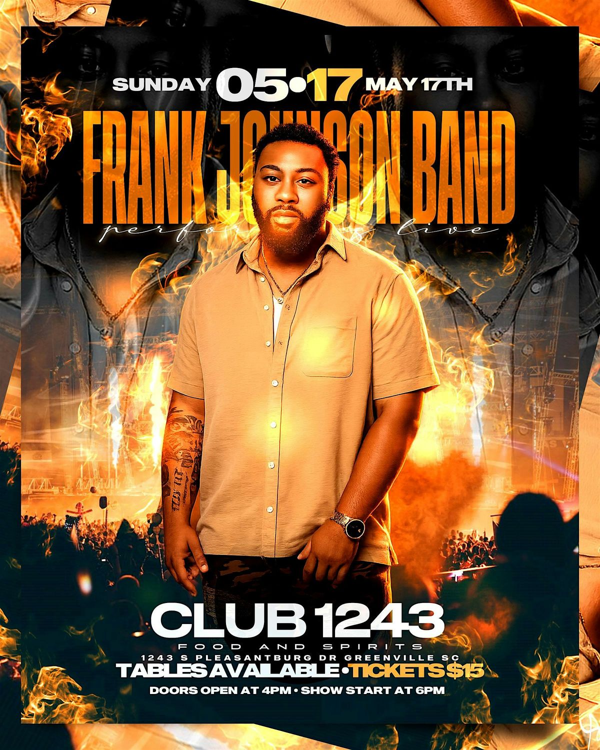 Don't miss out on an unforgettable evening with FRANK JOHNSON performing live and in person! This is your chance to experience his energy and talent up close. Grab your friends, bring your good vibes, and get ready for a night full of great music and good times.