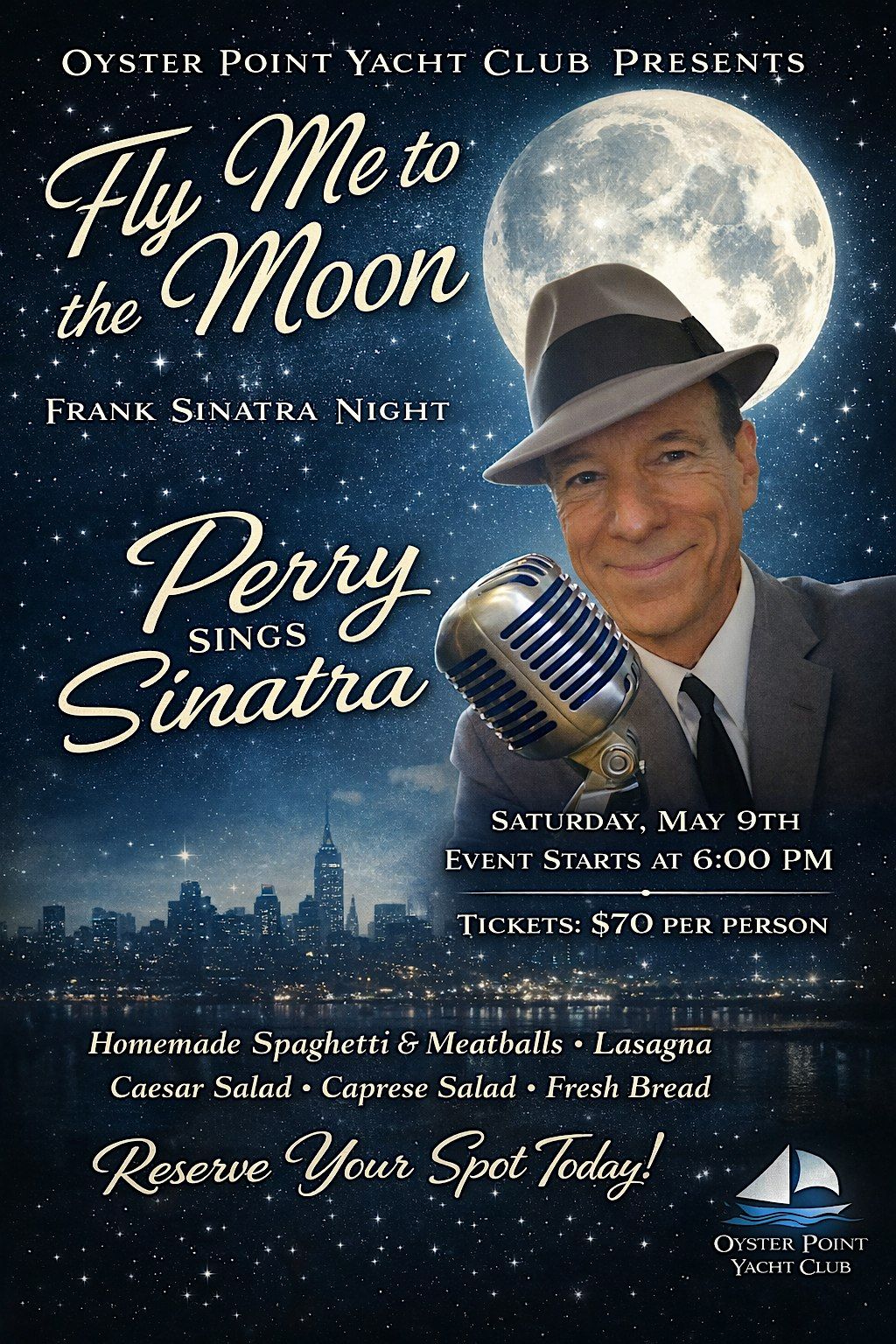 Followed by live entertainment as Perry performs the greatest hits of Sinatra, bringing the smooth vocals and charm of the Rat Pack era to the OPYC stage.