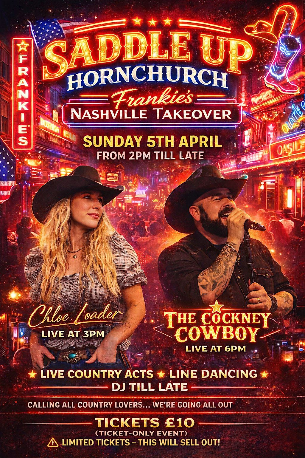 Get ready, Hornchurch… we’re bringing a full Nashville takeover to Frankie’s and going ALL OUT.