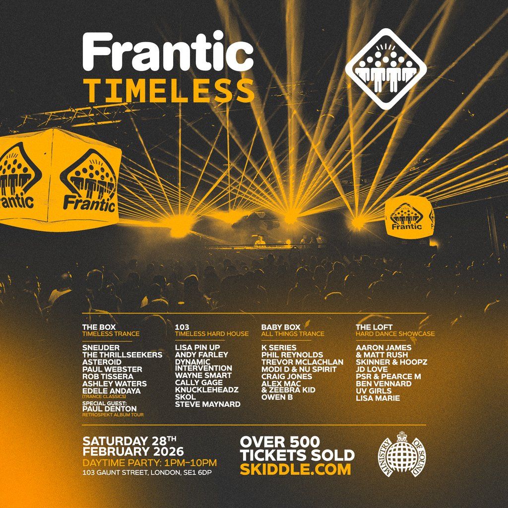 Frantic Timeless returns on Saturday 28th Feb 2026 at the iconic Ministry of Sound with 4 rooms of Trance & Hard House!Artists