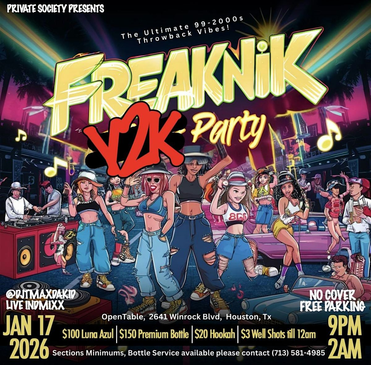 Get ready to travel back to ‘99 - 2000 with FREAKNIK Y2K PARTY, where we'll be dancing all night long to the best throwback hits!