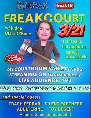 real freaks / real disputes. a courtroom variety punk show. still accepting disputes, hit the google form below!About this Event