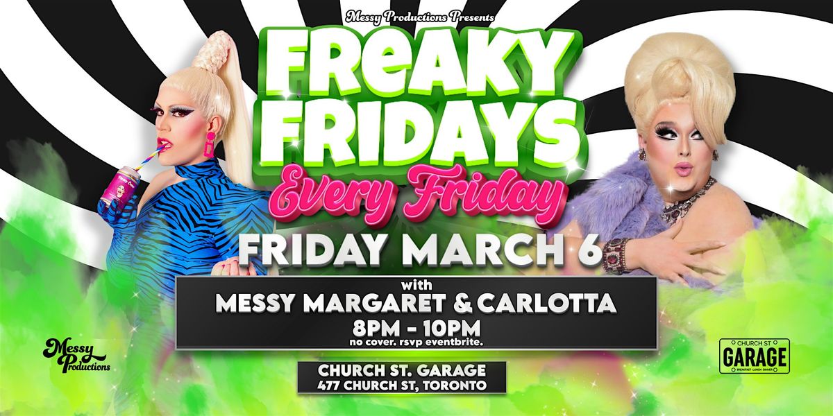 Start your weekend the right way with Freaky Fridays, a weekly drag show hosted by Toronto’s queen of camp, Messy Margaret. Each week features a special guest performer, bringing you a rotating lineup of drag talent and styles that keep every Friday fresh, fierce, and a little unhinged.