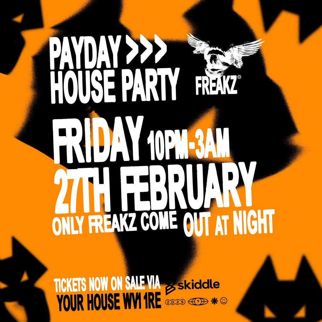 Freakz are back on Friday 27th February for a huge payday Friday house party!Music Genres : House
