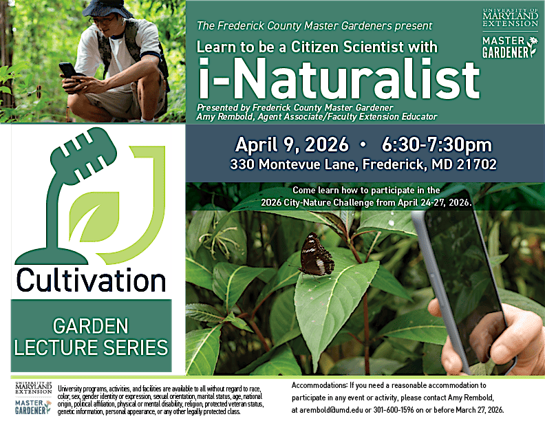 Join the Frederick County Master Gardeners for the Cultivation Lecture Series and learn how to be a Citizen Scientist with i-Naturalist.