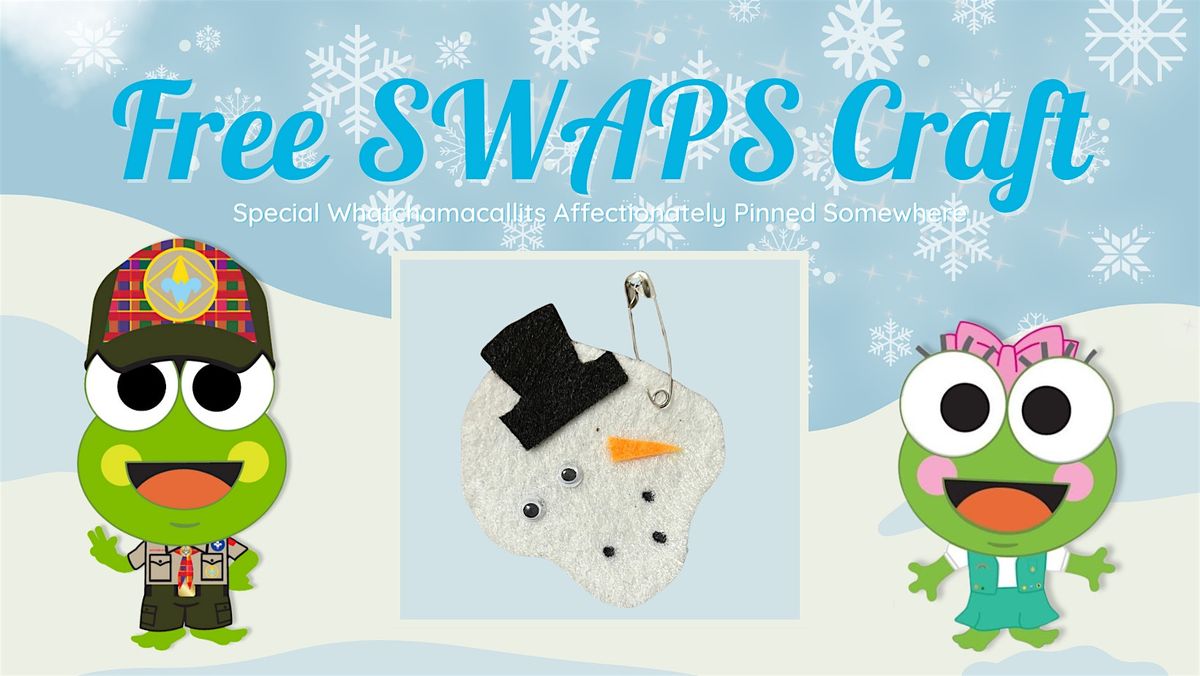 Hop in all day long with your scout or with your troop for a free scout craft. Make a Melted Snowman SWAPS for your next campfire! (While supplies last)