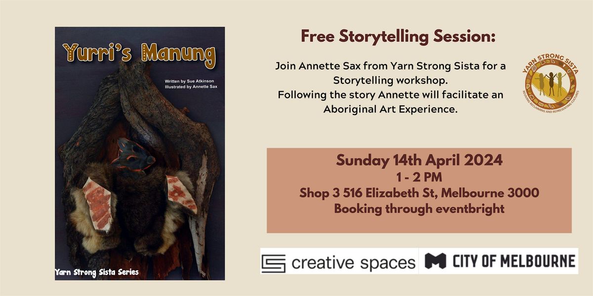 Following the storytelling session, Annette will invite the group to 'Make a Manung', providing a hands-on opportunity to engage with rich cultural tradition. Suitable for both children and families, this event promises an immersive and educational experience for all attendees.