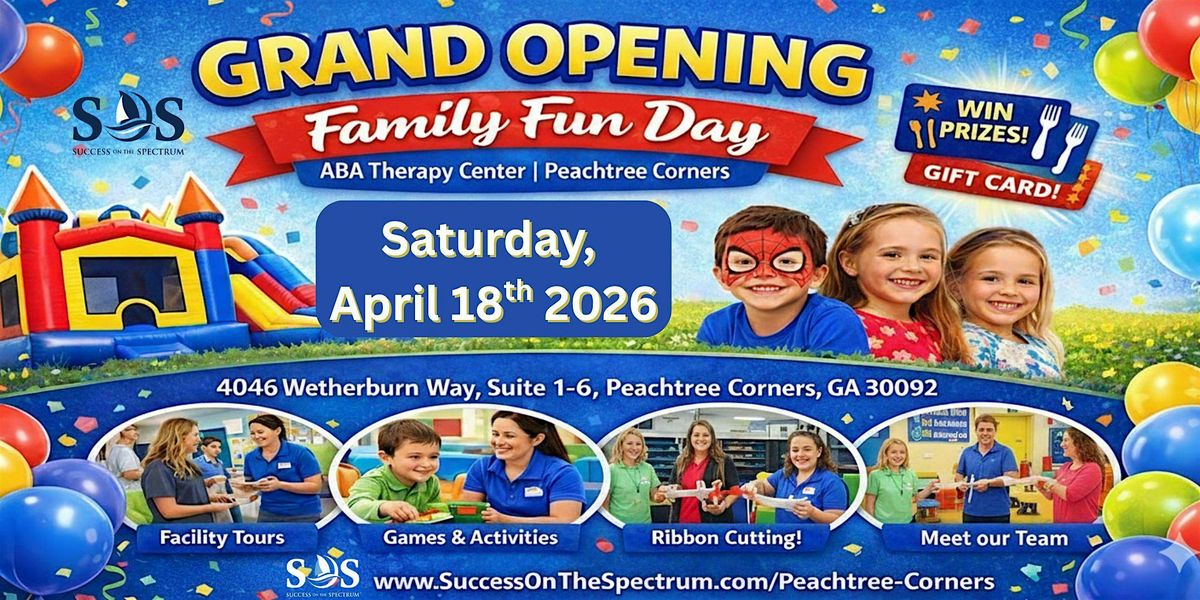 Join us for the Grand Opening of Success On The Spectrum – Peachtree Corners, a new ABA therapy center serving children with autism and their families in Peachtree Corners and Gwinnett County.