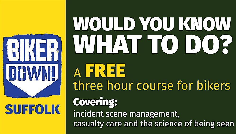 Join us for an in-person event all about biker safety and awareness! Whether you're a seasoned rider or just starting out, Biker Down is the perfect chance to learn essential skills to help yourself and others out on the road. Meet fellow enthusiasts, pick up great tips, and have a great time in Bury St Edmunds. Don’t miss out on this fun and educational gathering!