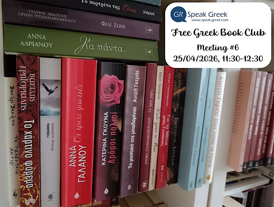 - Books can be borrowed in advance from the Free Greek Library of Speak Greek. When booking, simply let us know which title you’d like to read.
