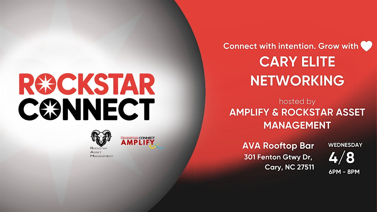 Join Rockstar Connect Amplify & Rockstar Connect Asset Management for an evening of meaningful connection on Wednesday, April 8, 2026, from 6 PM to 8 PM at AVA Rooftop Bar Cary.