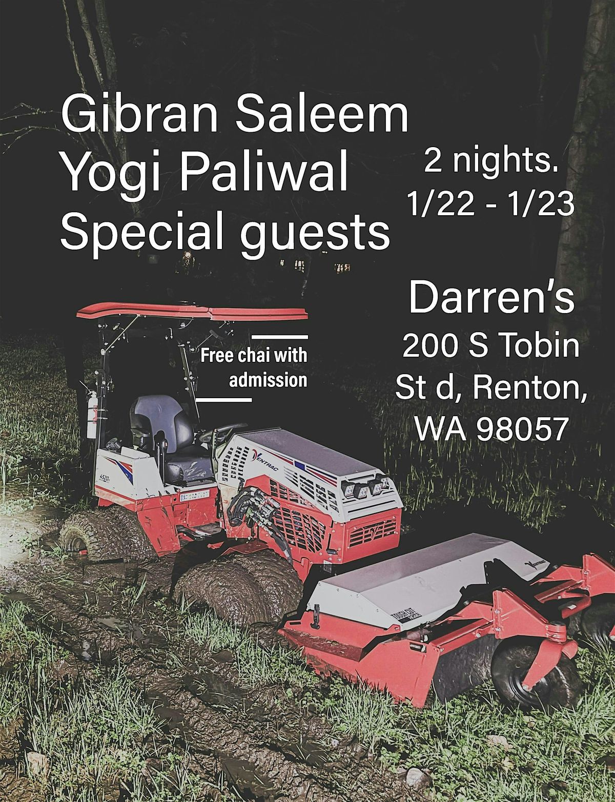 Hey there comedy lovers! Get ready for a night of laughter at the Free Chai Comedy show featuring Yogi Paliwal, Gibran Saleem, and more! 🎤🤣 Join us at Darren's Speakeasy Renton on January 23, 2026 at 9:00 AM (Pacific Time). It's going to be a riot, so mark your calendars and bring your friends along for a hilarious time!