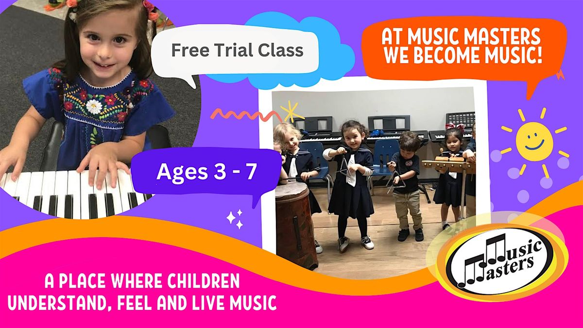Join our Music Masters FREE Music Trial Class on Saturday, March 28th! In less than one hour, your kid will be hooked on music and eager to learn and play more.