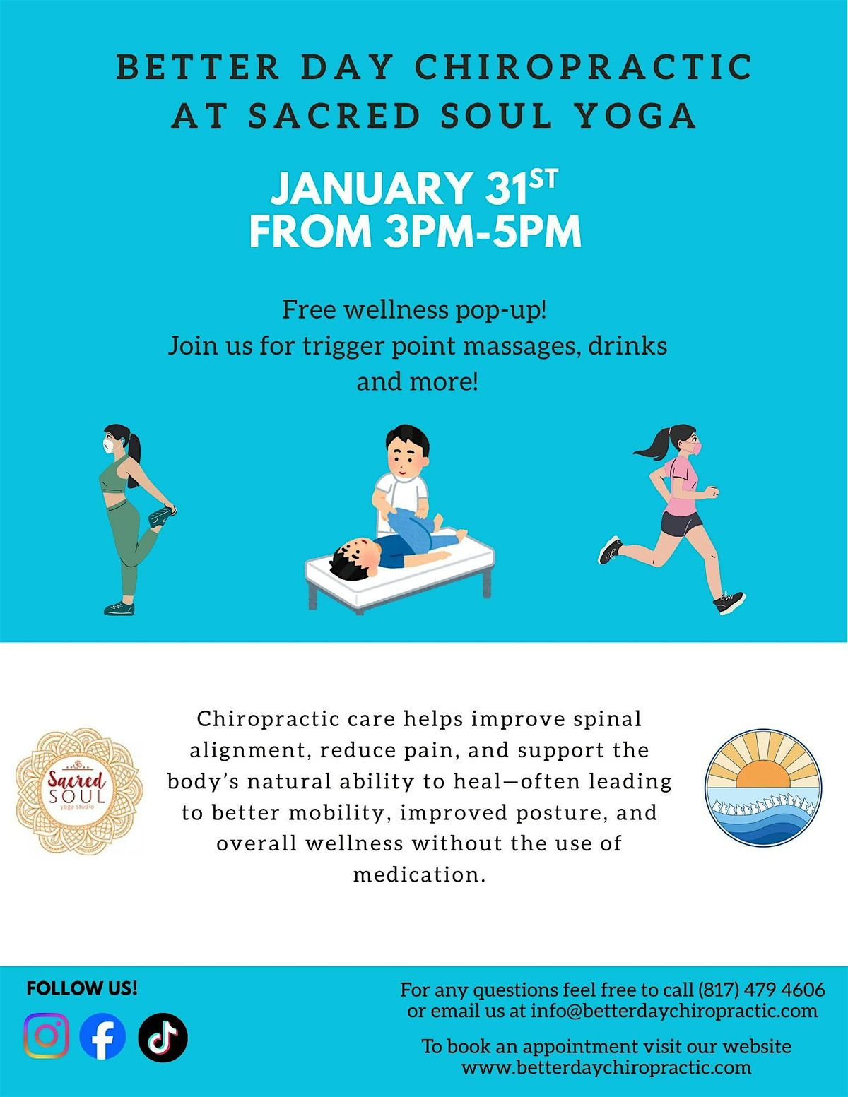 We invite you to join us at Sacred Soul Yoga Studio for this pop-up event in collaboration with Better Day Chiropractic.
