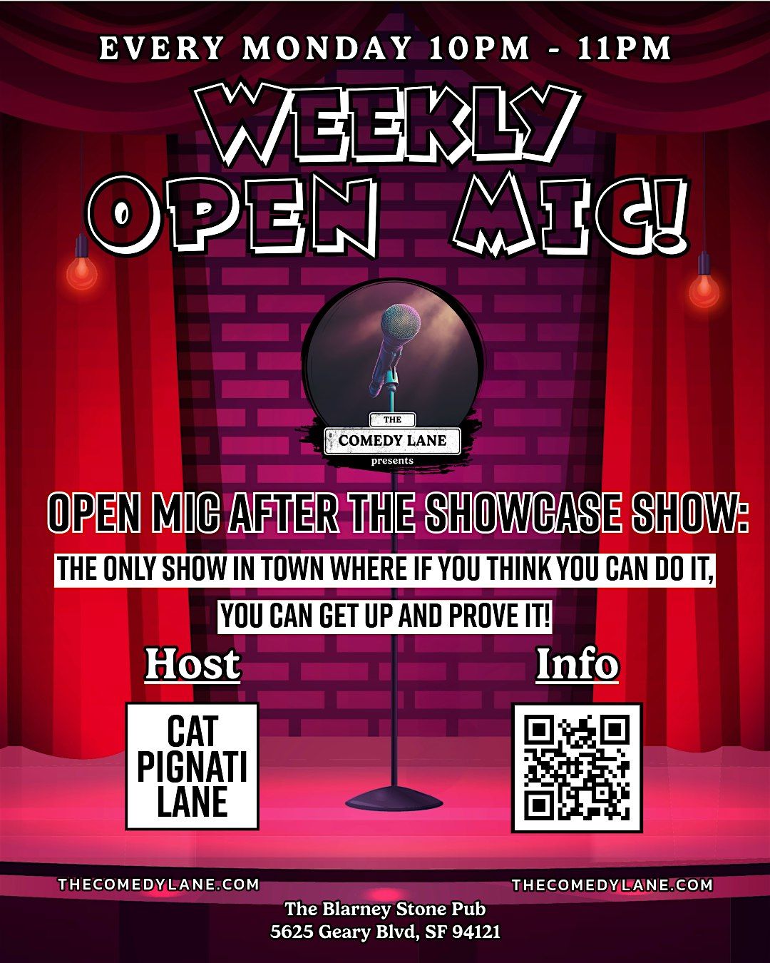 Come to the The Blarney Stone at 5625 Geary Blvd in SF this Monday for a show you won't want to miss!!