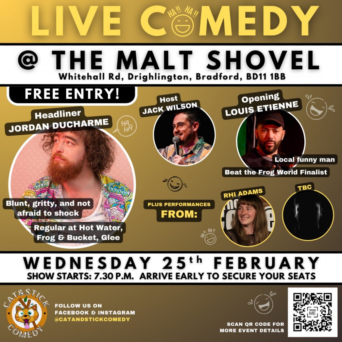 We've got a fantastic evening lined up for you, for our first comedy night of 2026 back at The Malt Shovel in Drighlington. This is a line-up not to be missed and you're invited to join us for an evening jam packed with laughter.