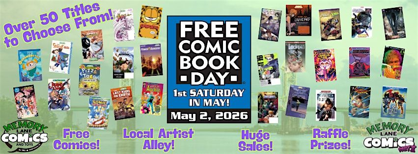 The best day in comics is back! Free Comic Book Day is here again and we’re so excited to share our favorite day with you.Wondering what Free Comic Book Day is? Well, it’s exactly what it sounds like. This year we have over 50 different comics to choose from for absolutely, no doubt, 100% free!How does it work? That’s simple. Just come on down to Memory Lane Comics on Saturday, May 2nd and you’ll get 5 free comics just for being there. That’s all it takes to walk away with plenty to read and enjoy. More free comics will also be available for anyone that chooses to visit both Memory Lane locations that day as well!