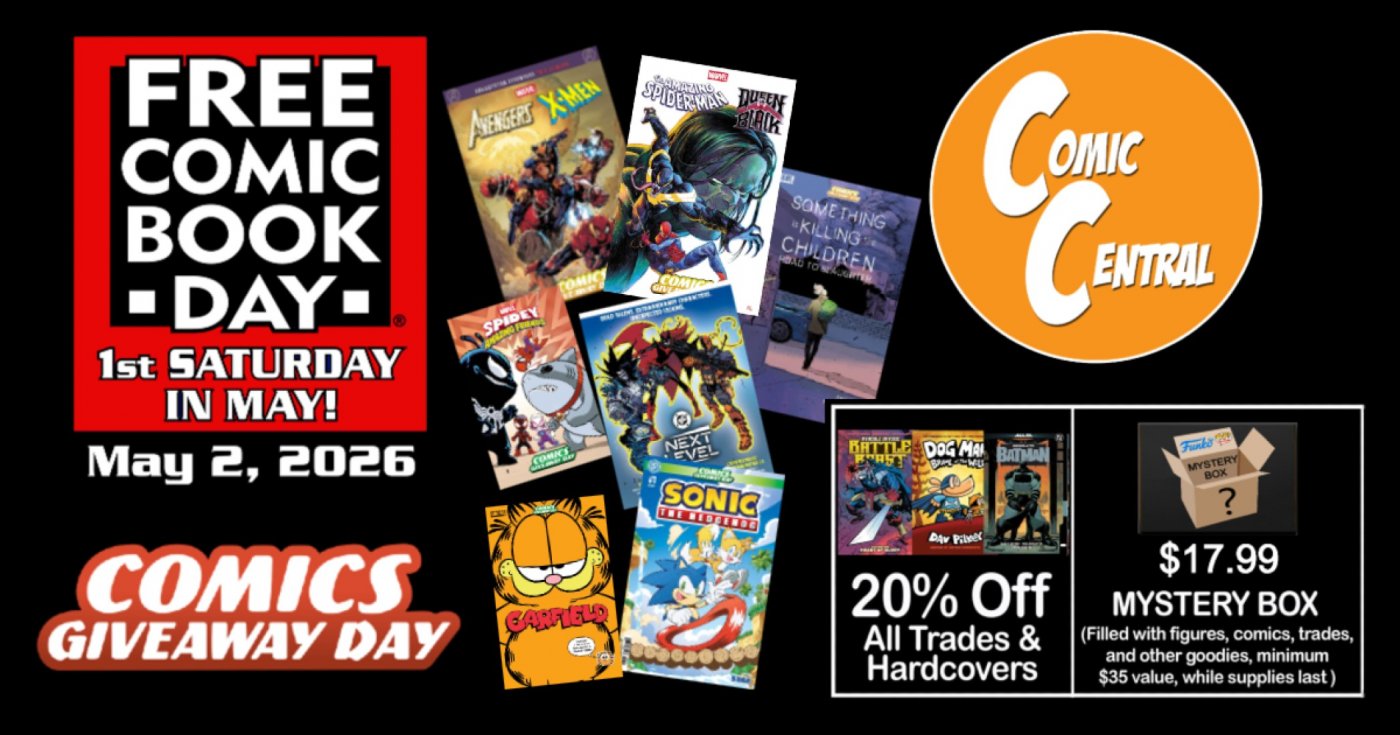 In traditional Free Comic Book Day style we will have dozens of comic books to distribute for FREE! All free comics will be chosen from the special Free Comic Book Day section. We do have limits per person. By supporting a local small business and making a purchase you will be able to gather up additional free comics from the Free Comic Book Day section!