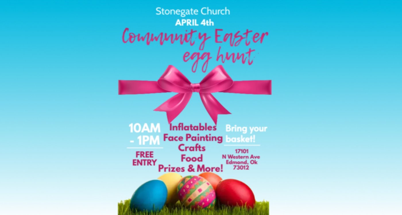 Join us April 4th, at Stonegate Cumberland Church for a FREE Community Easter Egg Hunt! Age specific hunting groups, prizes, inflatables, food and much more!!! You wonβt want to miss it! Grab a friend and bring your basket! We will see you there!