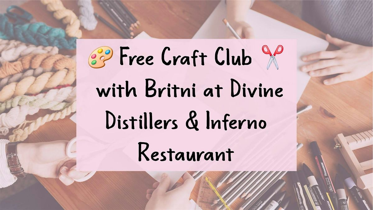 Hello, hello - Britni here! I have seen & heard quite a few people seeking a crafting/social group to spend time with like-minded creatives, and meet new people! So I am teaming up with Divine Distillers & Inferno Restaurant to bring you just that. ALL ages, genders, races, and skill levels welcome! We are a LOVING and WELCOMING group of neighbors <3