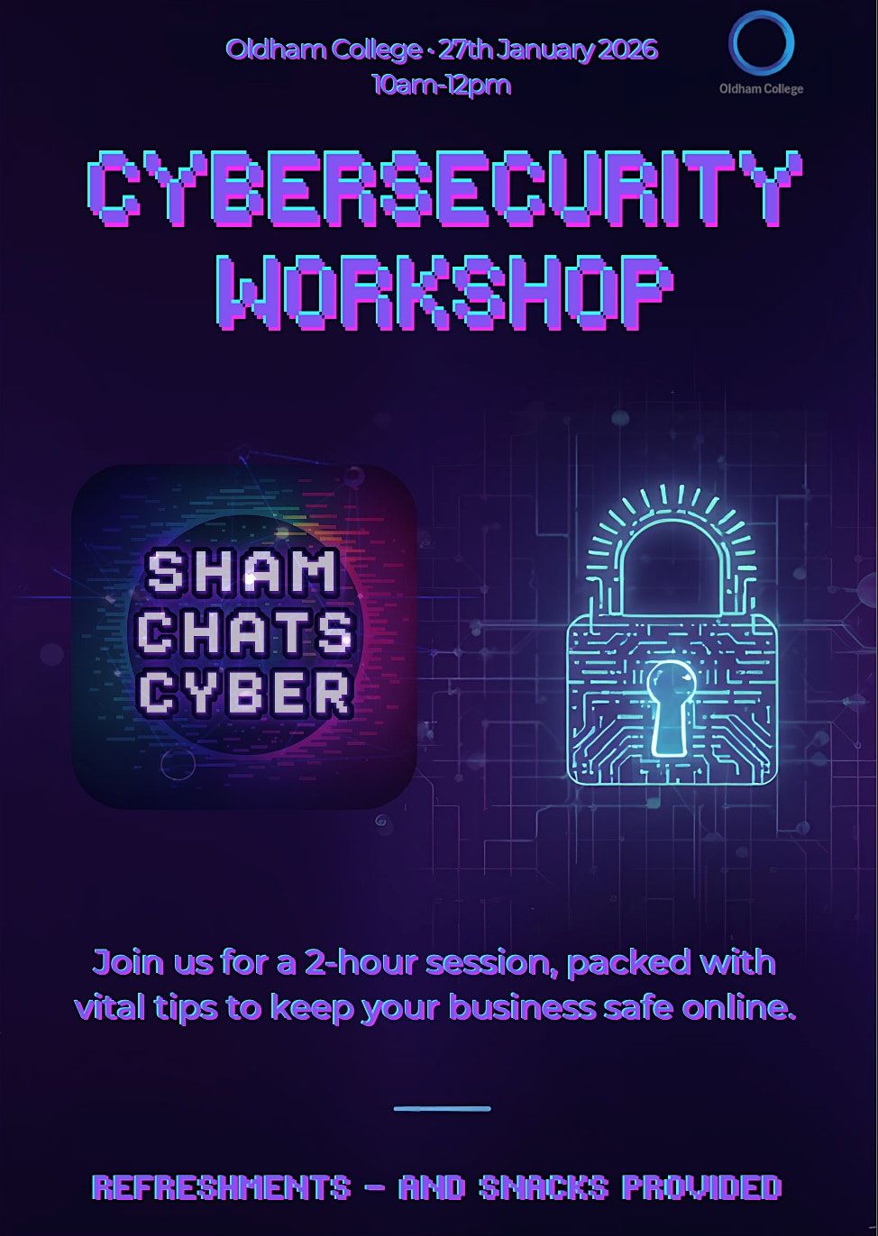 Welcome to the Free Cybersecurity Workshop For Businesses in The North West! Join us at Oldham College on January 27, 2026 at 10:00 AM (Europe/London) for a 2 hours of learning and networking. Whether you're a small startup or a large corporation, this workshop is perfect for enhancing your cybersecurity knowledge. Don't miss this opportunity to protect your business from online threats. See you there!